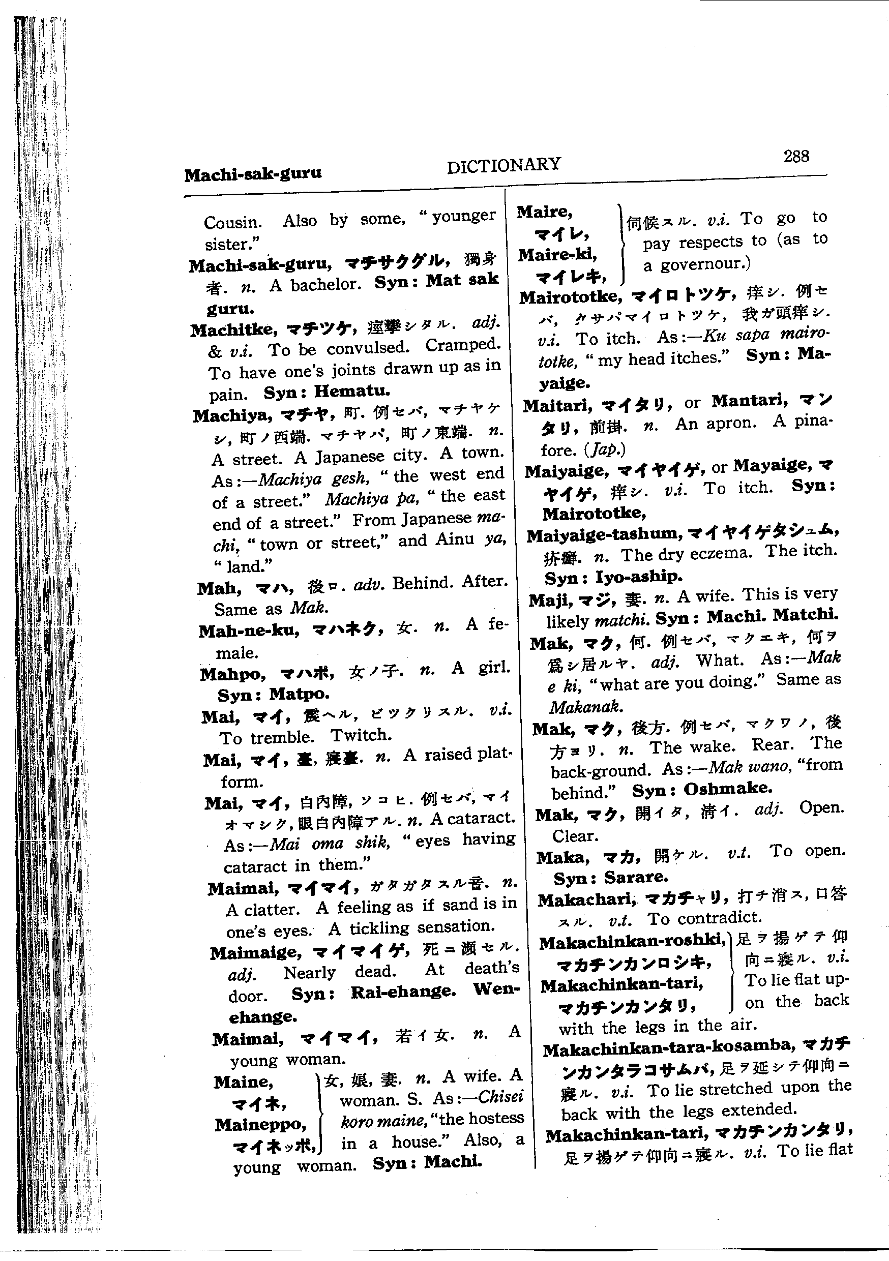 バチェラーのアイヌ語コース