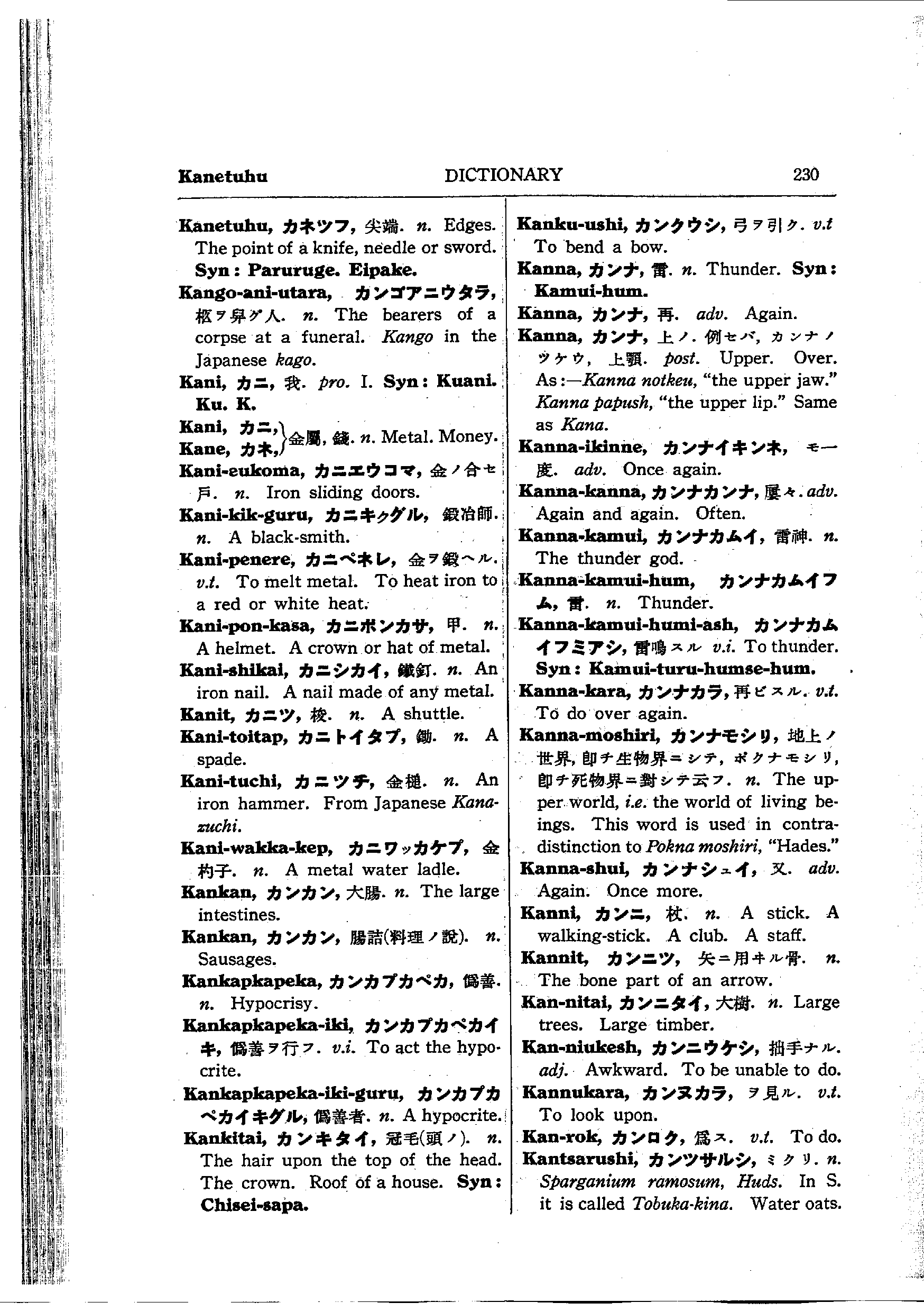 バチェラーのアイヌ語コース