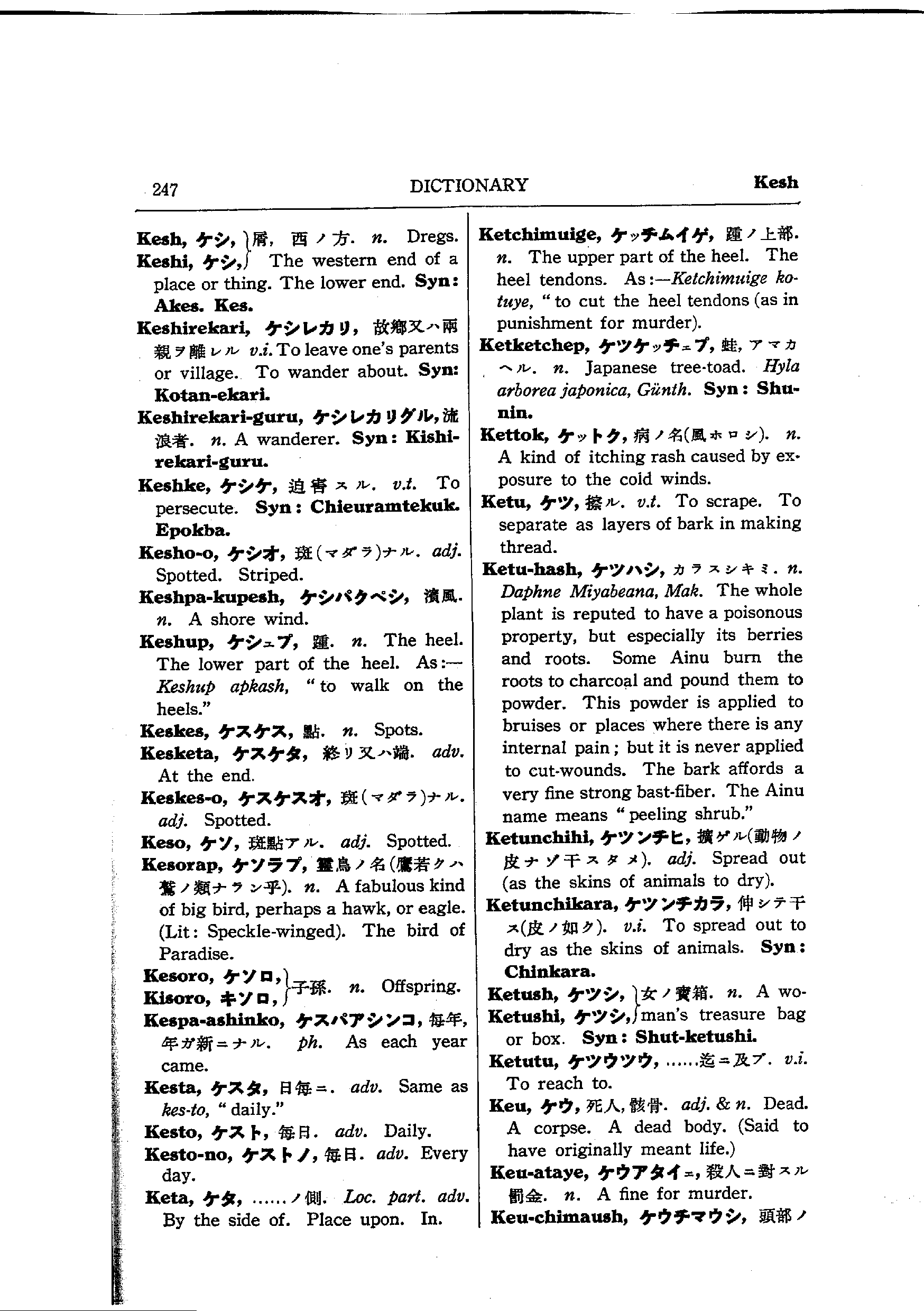 バチェラーのアイヌ語コース