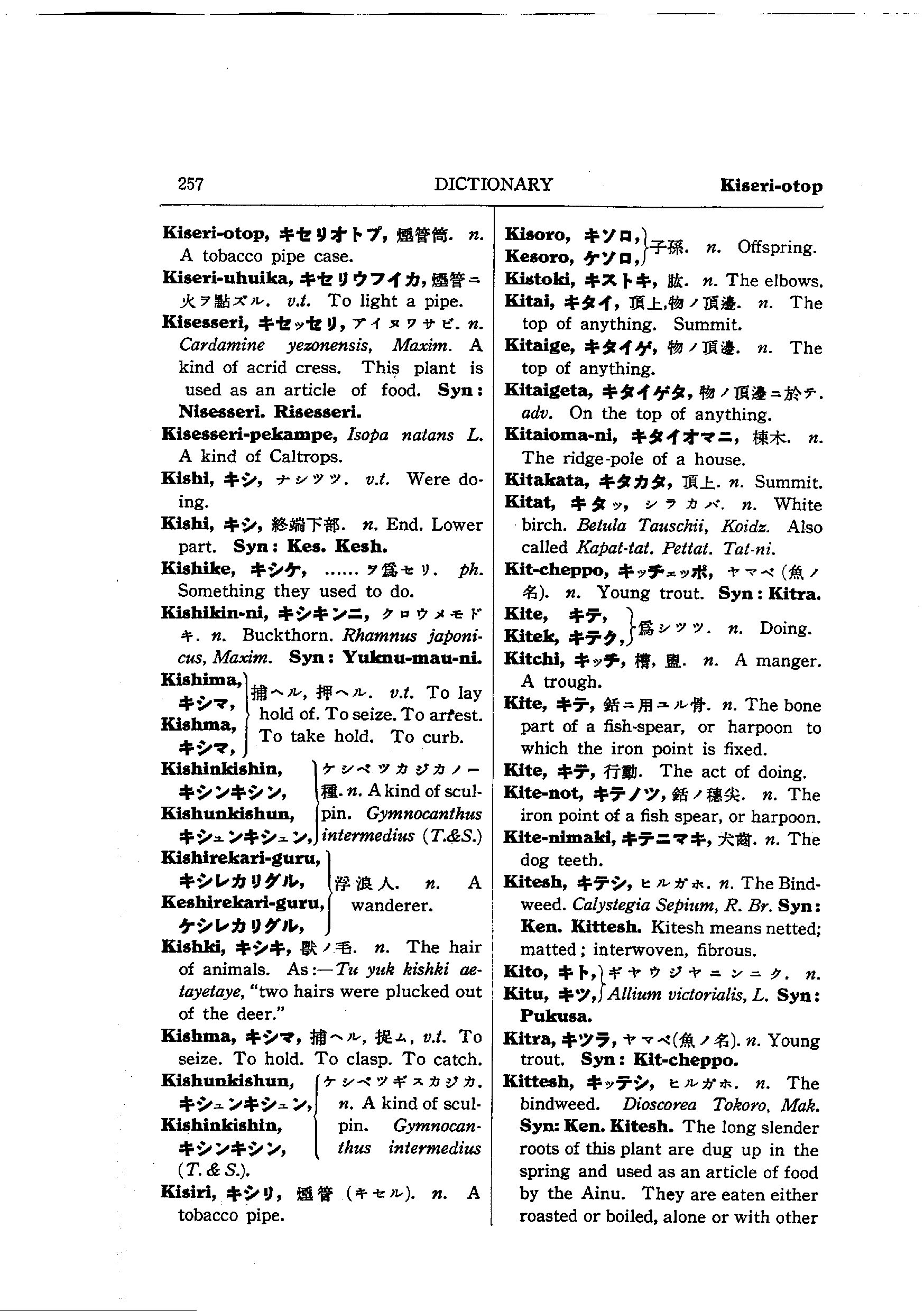 バチェラーのアイヌ語コース