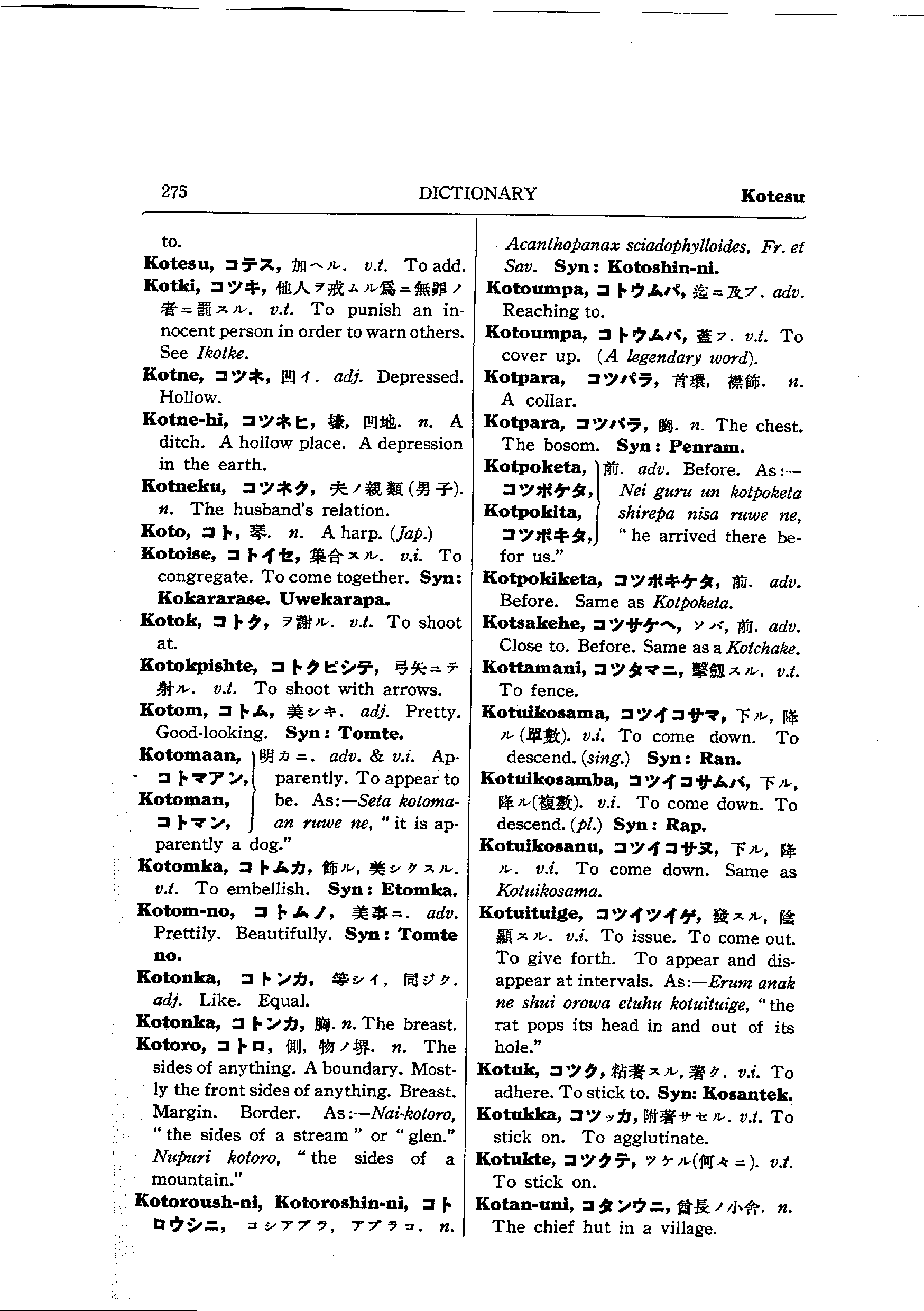 バチェラーのアイヌ語コース